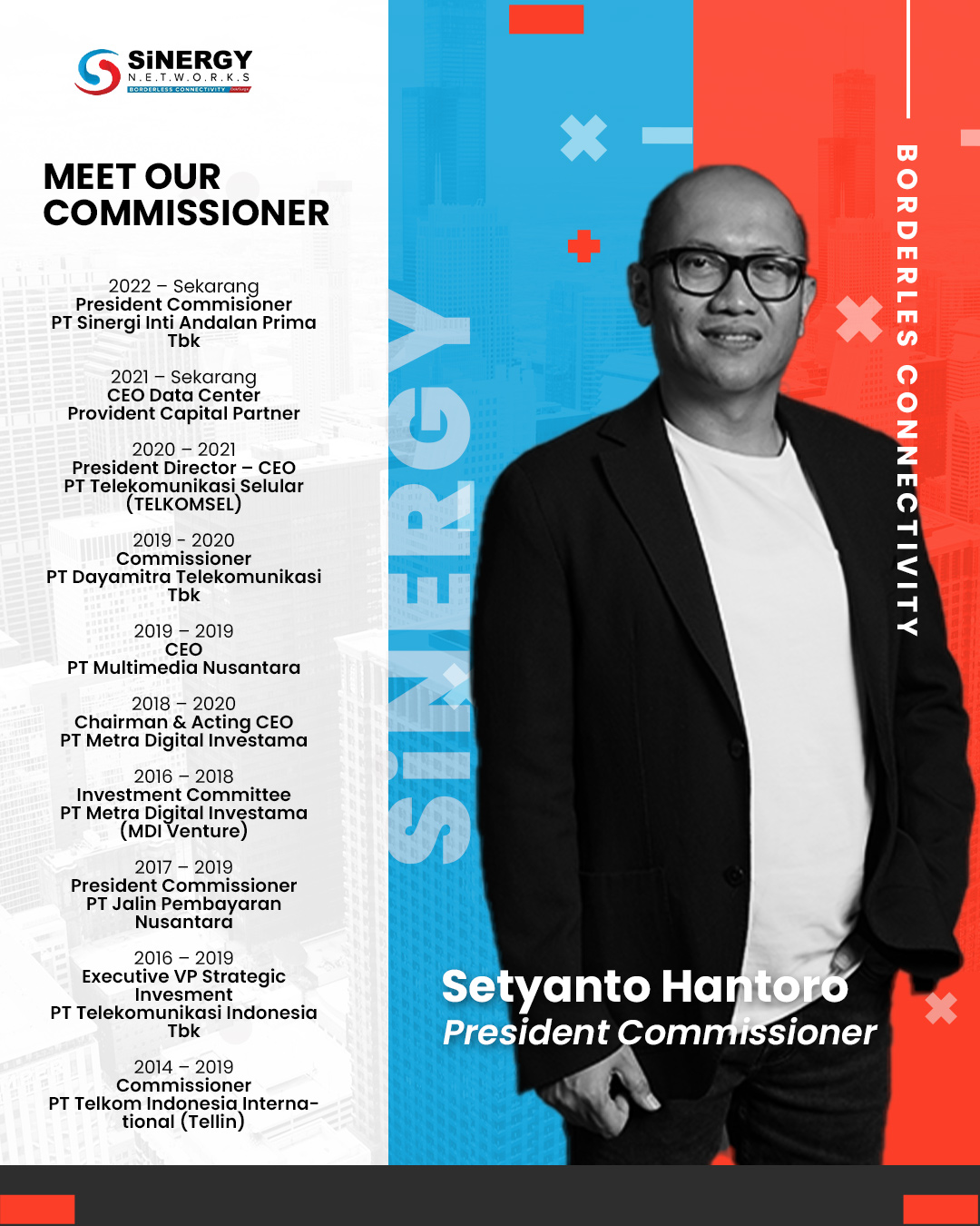 Di bawah kepemimpinan Setyanto Hantoro, $INET (PT Sinergi Inti Andalan Prima Tbk) siap mencapai puncak baru di industri telekomunikasi. Pengalamannya yang luas dalam mengarungi berbagai sektor telah membekali beliau.