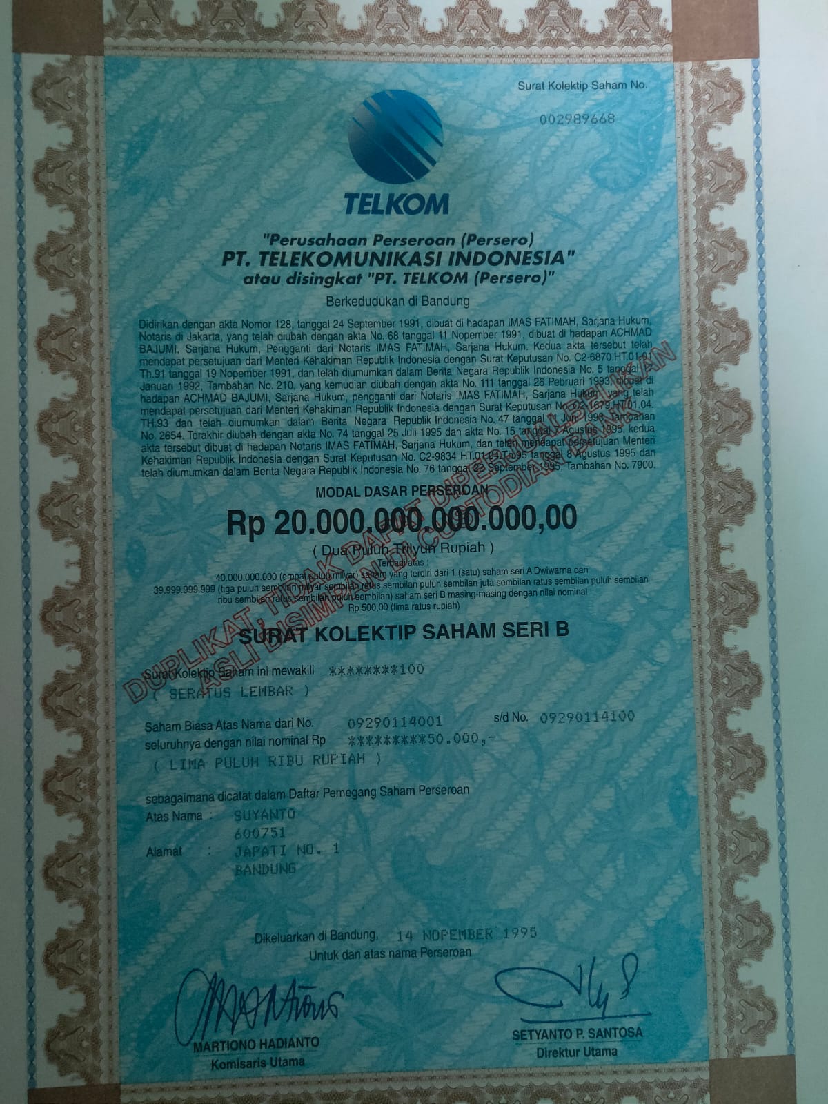 saham yang hilang itu biasanya adalah saham yang masih dalam bentuk lembaran kertas. kalau skrng saham sudah banyak dalam bentuk digital/scriptless.nih contoh saham yg bisa hilang wkwkwkw $TLKM