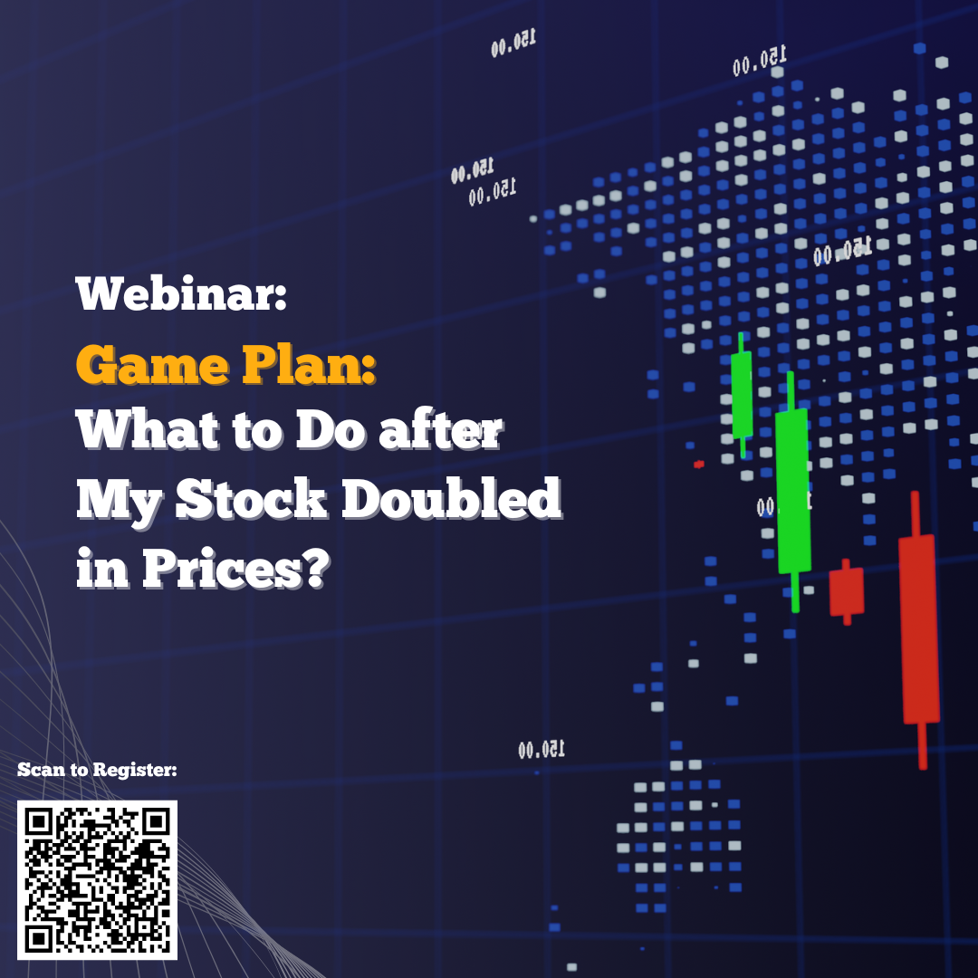 Join us in this webinar "Game Plan: What to Do after My Stock Doubled in Prices?" as we invite Mr. Ian Tai, co-founder of DividendVault to share with you his proven strategies on how to navigate this critical point in your investment journey, make informed decisions, and maximize your potential for long-term success.