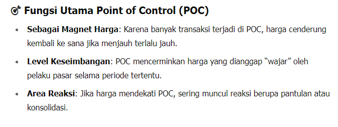 jelasnya coba tanya ke AI, misal "jelaskan tentang indikator volume profile, bagaimana cara membaca dan menganalisa indikator tersebut dan apa fungsi dari point of control"