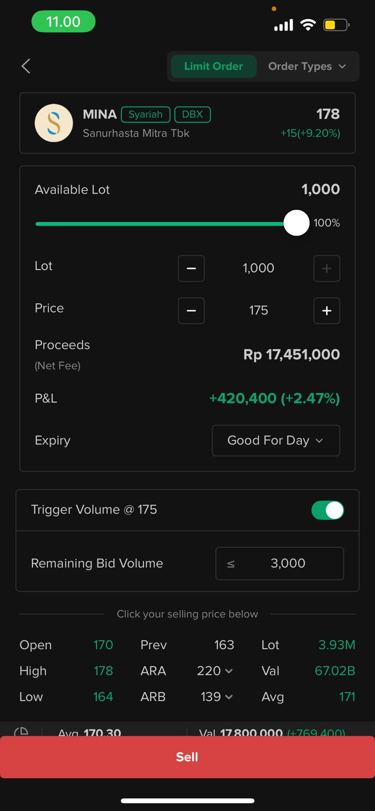 🆕 Sekarang bisa set Order Sell dengan Trigger Volume.
