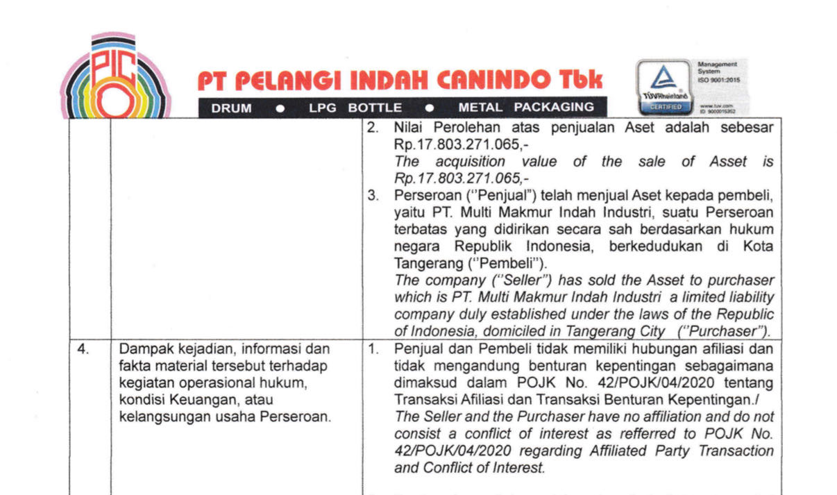 hasil penjualan aset sebesar 17.8 Milyar akan tercatat di LK Q3 dan "berpotensi" menjadi booster bottom line yang akan rilis Oktober nanti