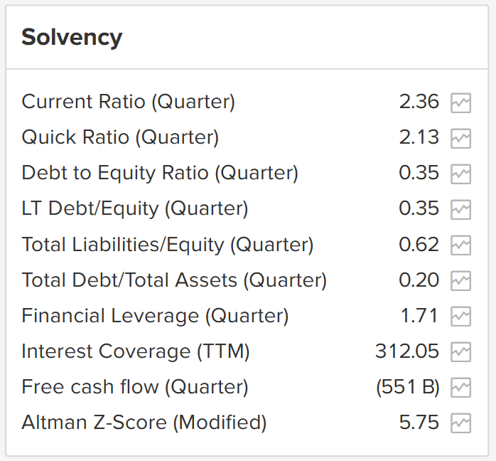 ➡️ LT Debt/Equity = 0.35 menunjukkan utang jangka panjang juga relatif kecil dibanding modal.
