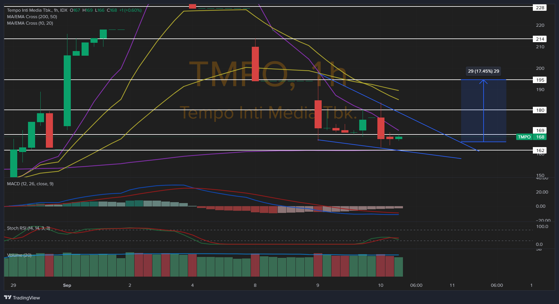 $TMPO berpotensi untuk wushh setelah berhasil menutup gap di harga 163 , potensi naik ke 182 195 hingga 210 XL sudah CL kemaren harusnya sesi 2 naik kenceng BANDAR AVG KISARAN DARI 28 AGUSTUS - SEKARANG BERADA DI HARGA 200 - 230 DISC ON $SLIS$BELL