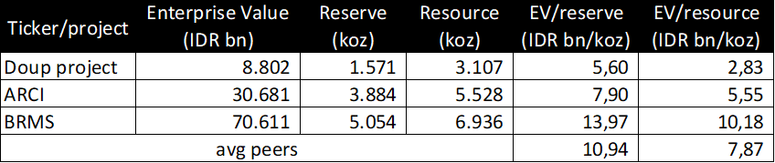Sementara itu, bagi PSAB, tambang Doup merupakan salah satu aset utama perusahaan, di mana reserves dan resources Doup masing–masing setara 61% dan 51% dari total reserves dan resources PSAB.