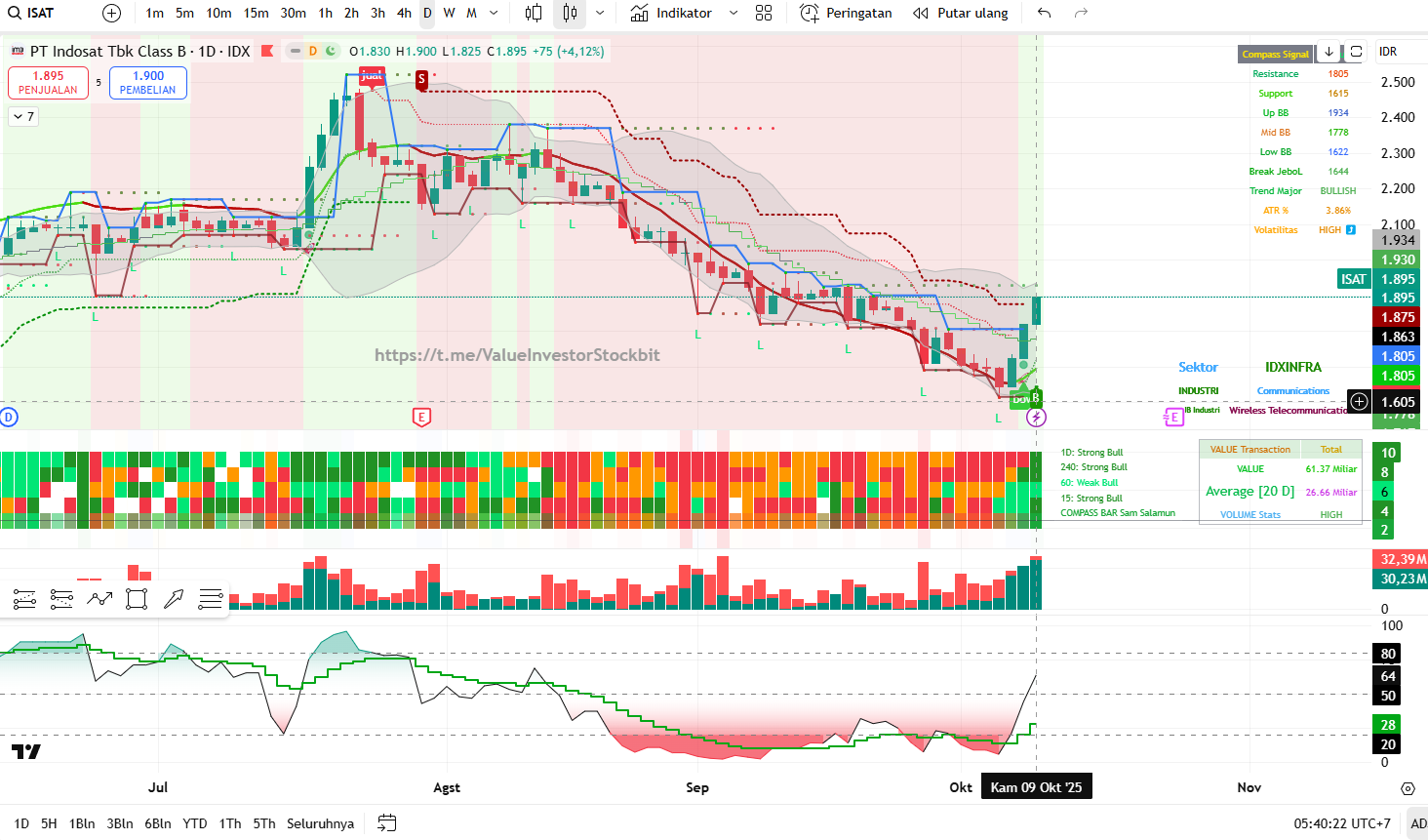 🔍 $ISAT cicil entry buy otomatis 1885-1895 OB=Or Better, semakin dapat harga bawah jauh lebih bagus, but if you tidak berani silahkan skip saja, digrup gratis kita ini bebas).
