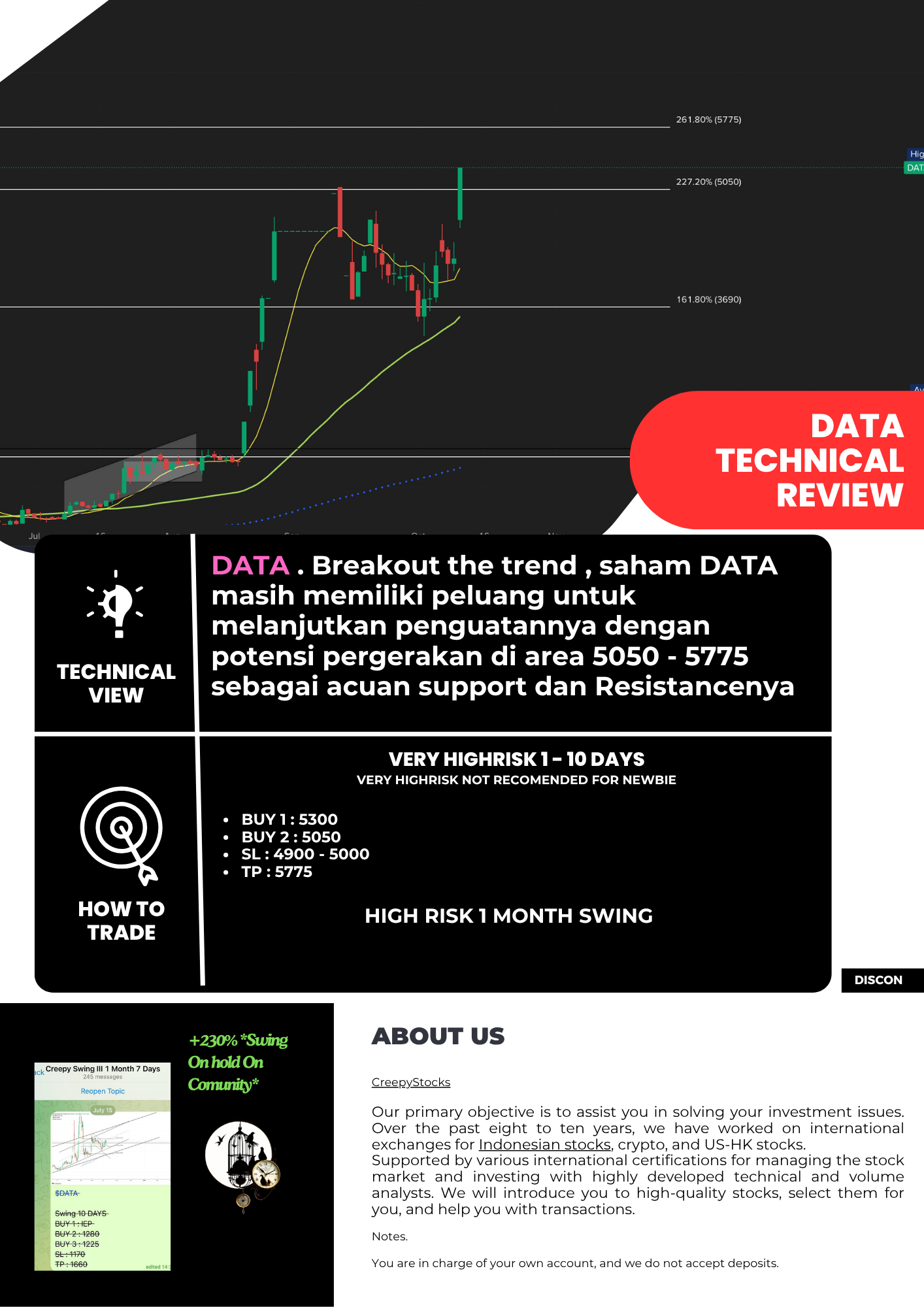 $DATA Kembali breakout . Saham DATA kembali menarik untuk di amati . Bagaimana analisanya simak penjelasan pada postingan di bawah +200% up untuk comunity