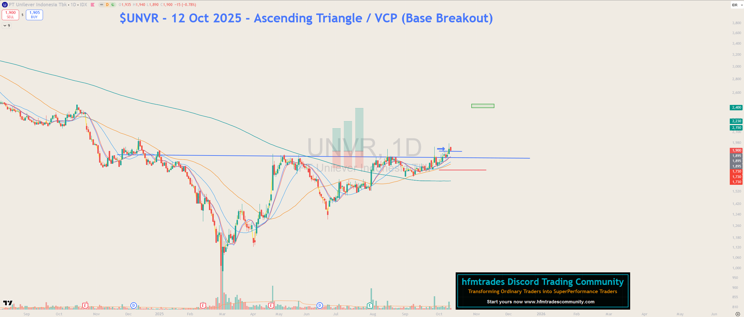 $UNVR Ascending Triangle base breakout#DailyChart#AscendingTriangle #VCP #Breakout#IDX#Oct2025