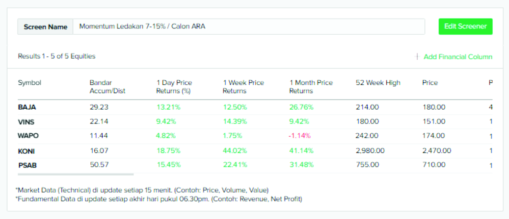 Kita lihat apakah SENIN besok masih bisa kasih cuan ini Screener disaat IHSG koreksi 馃敟 -2.57%