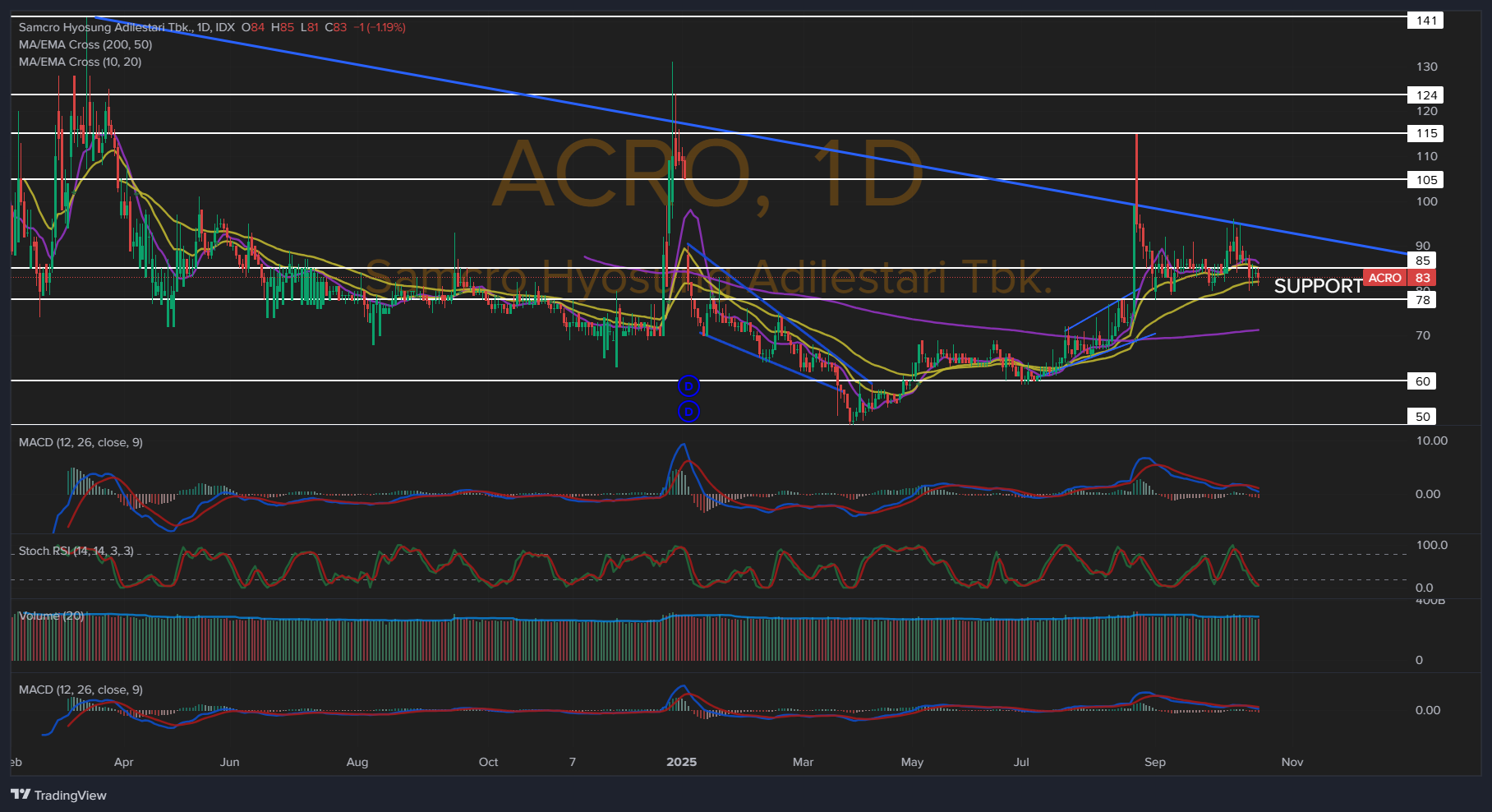 $ACRO Mulai ada arah pembalikan trend dari downtrend ke uptrend emiten ini cocok buat swing mid long deviden yieldnya lumayan 27% harga sahamnya masih di 80an, Apalagi pak Purbaya akan Brantas Skandal Tekstil. DYOR yaa