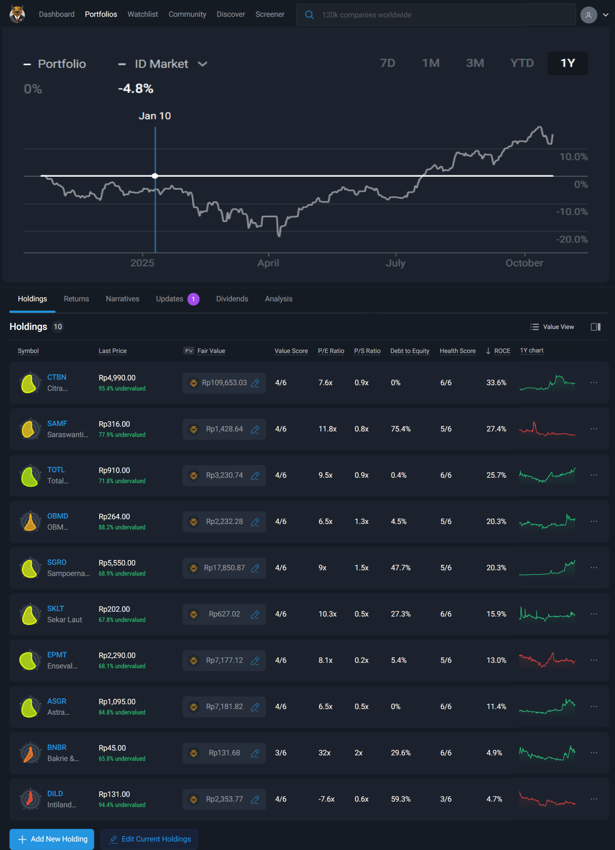 Iseng pantau potensi 30 saham 50% up undervalued part 2/3, menggunakan https://cutt.ly/Gr83wGnd (Financial Data provided by S&P Global Market Intelligence LLC, analysis provided by Simply Wall Street Pty Ltd. Copyright ©️ 2025, S&P Global Market Intelligence LLC. All rights reserved. )