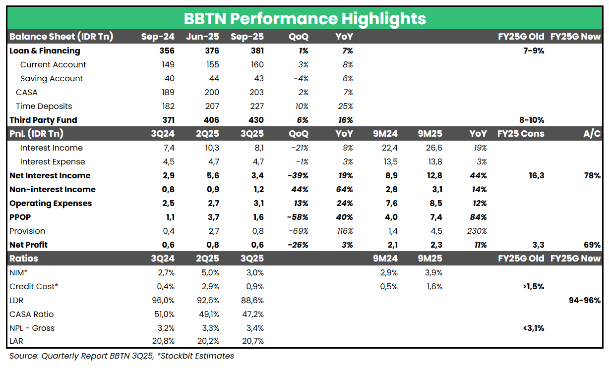 BBTN 9M25: Laba Bersih +11% YoY, Sejalan dengan Ekspektasi