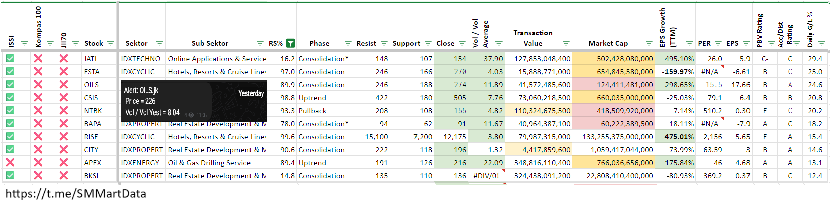 * Notes: Data RS%, EPS Growth bisa diakses lewat SMMartData Telegram Bot.