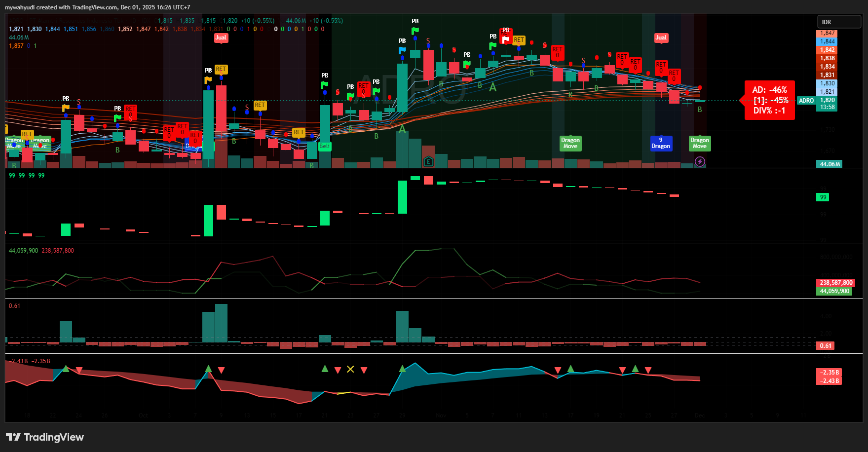 $ADRO 9 naga move to . terlihat signal buy, boleh cicil beli.. akan mencoba uji ke area 2 k kembali.. data tehnis masih minim, cuman dragon move.. vpa 2 anak tangga kecil esok reli masuk anak tangga naik 3.. mantul di area ma pantulannya hold selama diatas 1800