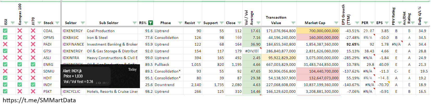 * Notes: Data RS%, EPS Growth bisa diakses lewat SMMartData Telegram Bot.