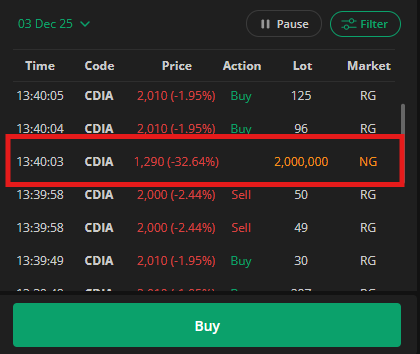 Ini hati-hati atau siap-siap beli ?? 馃榿 $CDIA Ada transaksi Nego lho hargnya kok murah banget !!!!!