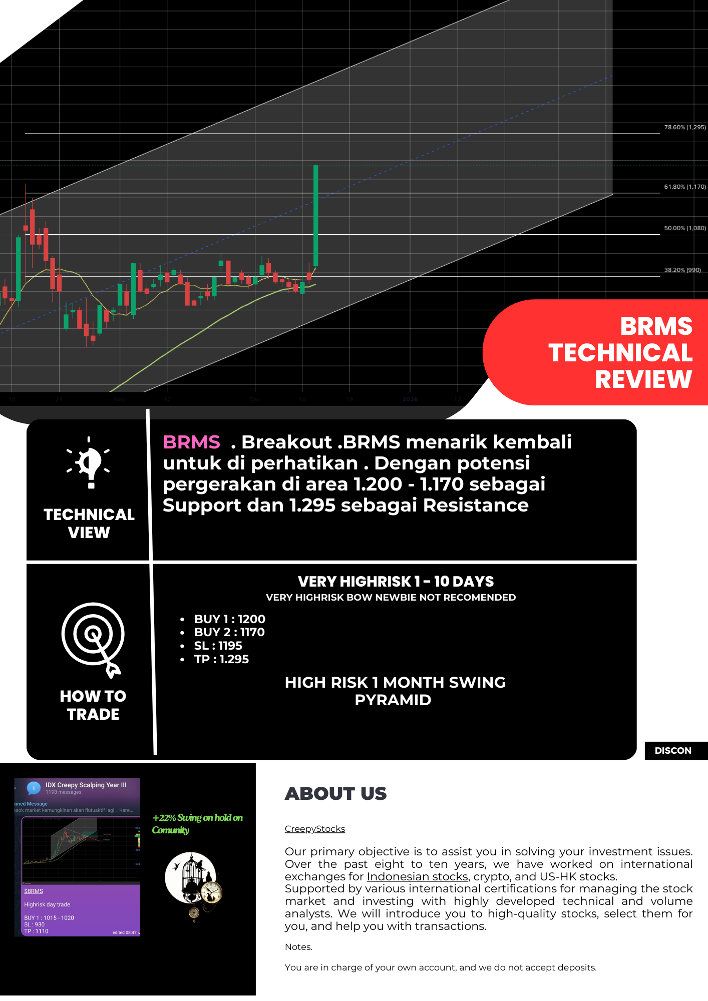 $BRMS Rebound , breakout . Saham BRMS menarik untuk di amati . Bagaimana peluang BRMS besok ? Simak penjelasannya pada postingan berikut