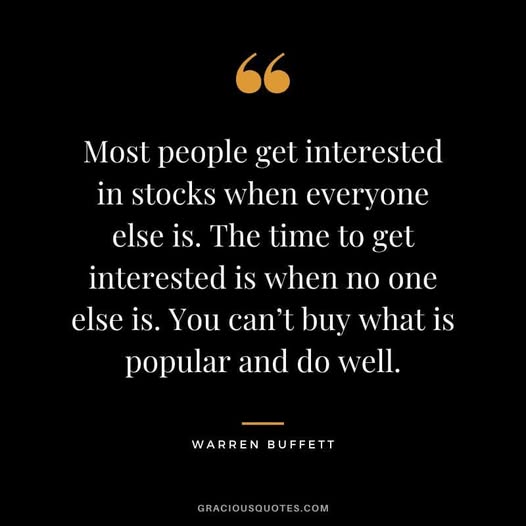 Nah, Ini persis seperti konteks ketika Buffett mengatakan waktu terbaik utk tertarik adalah saat hampir tidak ada yg tertarik.