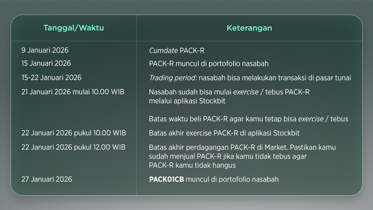 • PACK-R yang tidak ditebus atau dijual akan HANGUS setelah batas waktu tebus/perdagangan di 22 Januari 2026.