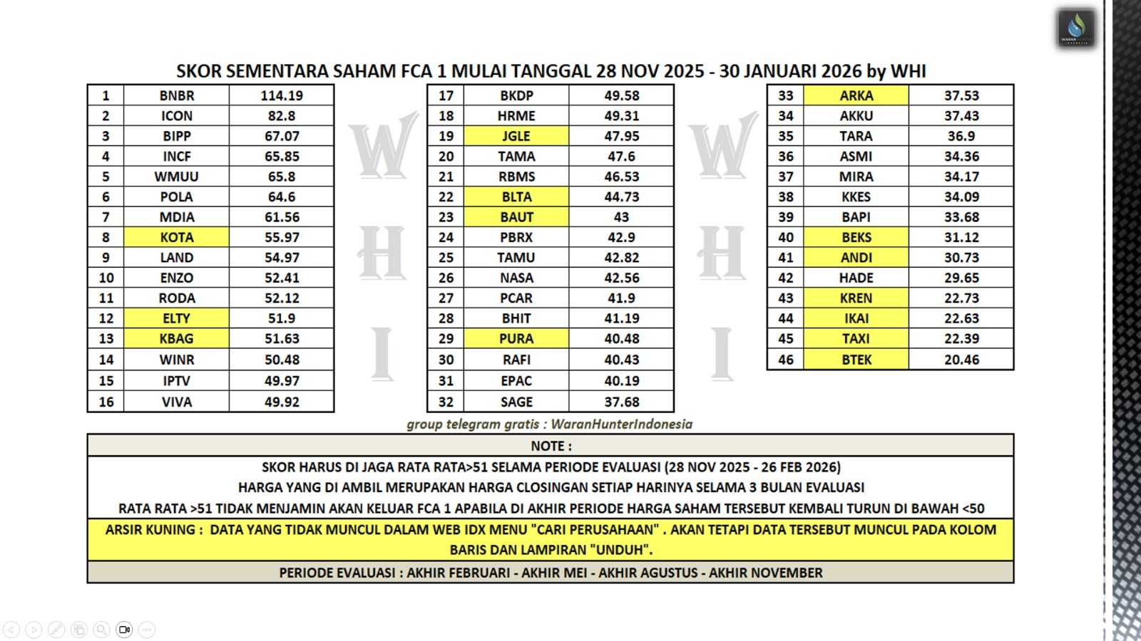 $JGLE $VIVA $SAGE馃敯update skor sementara saham FCA Kriteria 1馃敯periode 28 Nov 2025 - 30 Jan 2026.semoga bermanfaat 馃挭馃挭馃挭馃挭