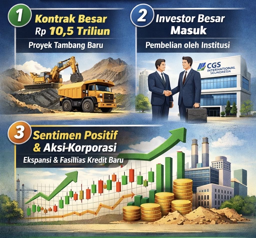 Perusahaan menandatangani kontrak besar untuk mengelola tambang dengan nilai sekitar Rp10,5 triliun, yang memberikan prospek pendapatan jangka panjang dan meningkatkan keyakinan investor terhadap prospek bisnis perusahaan. Ini bisa jadi salah satu alasan harga $DEWA naik karena optimisme akan keuntungan masa depan.