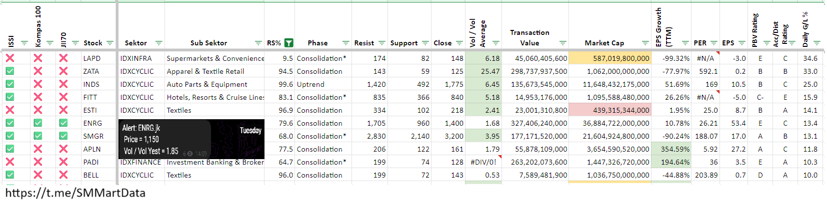 * Notes: Data RS%, EPS Growth bisa diakses lewat SMMartData Telegram Bot