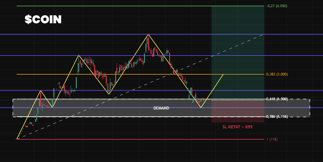 Intinya COIN saat ini sedang di titik area penting, sangat sangat jelas jika harga rusak dibawah 1000 udah harus waspada.
