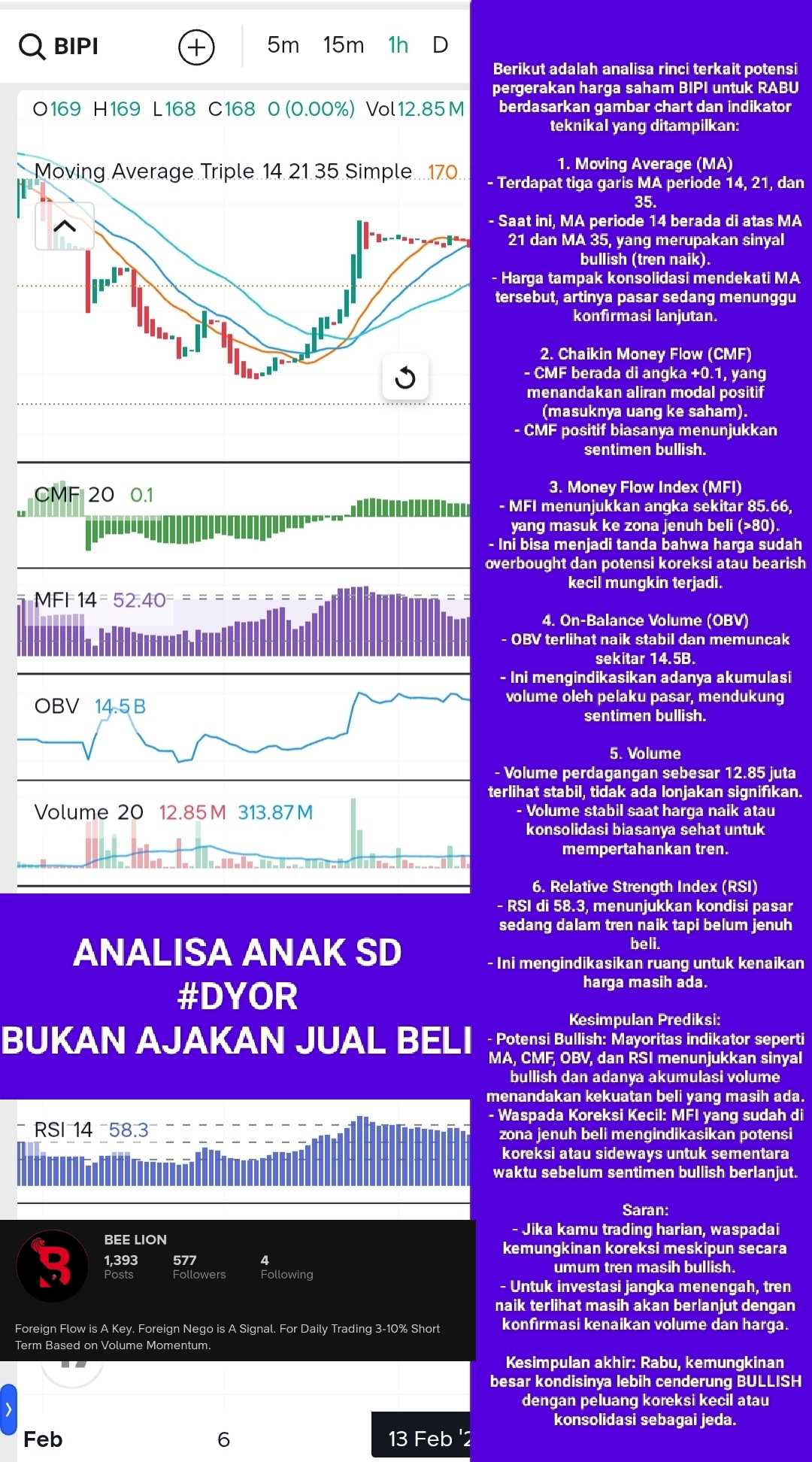 Berikut adalah analisa saham $BIPI untuk Rabu Tel: