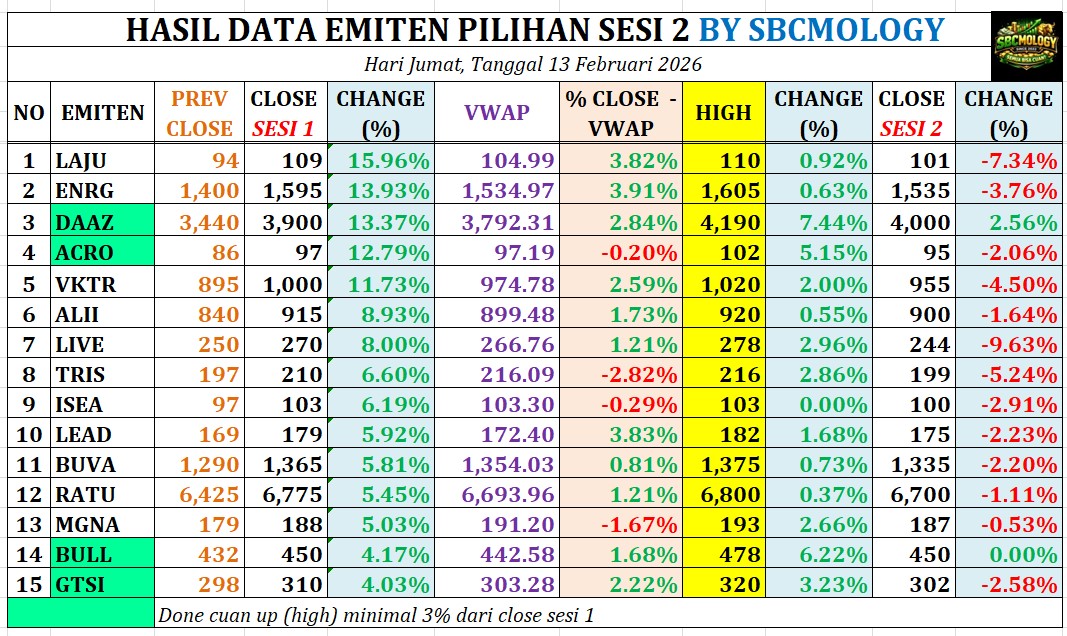 HASIL DATA EMITEN PILIHAN SESI 2 BY SBCMOLOGY