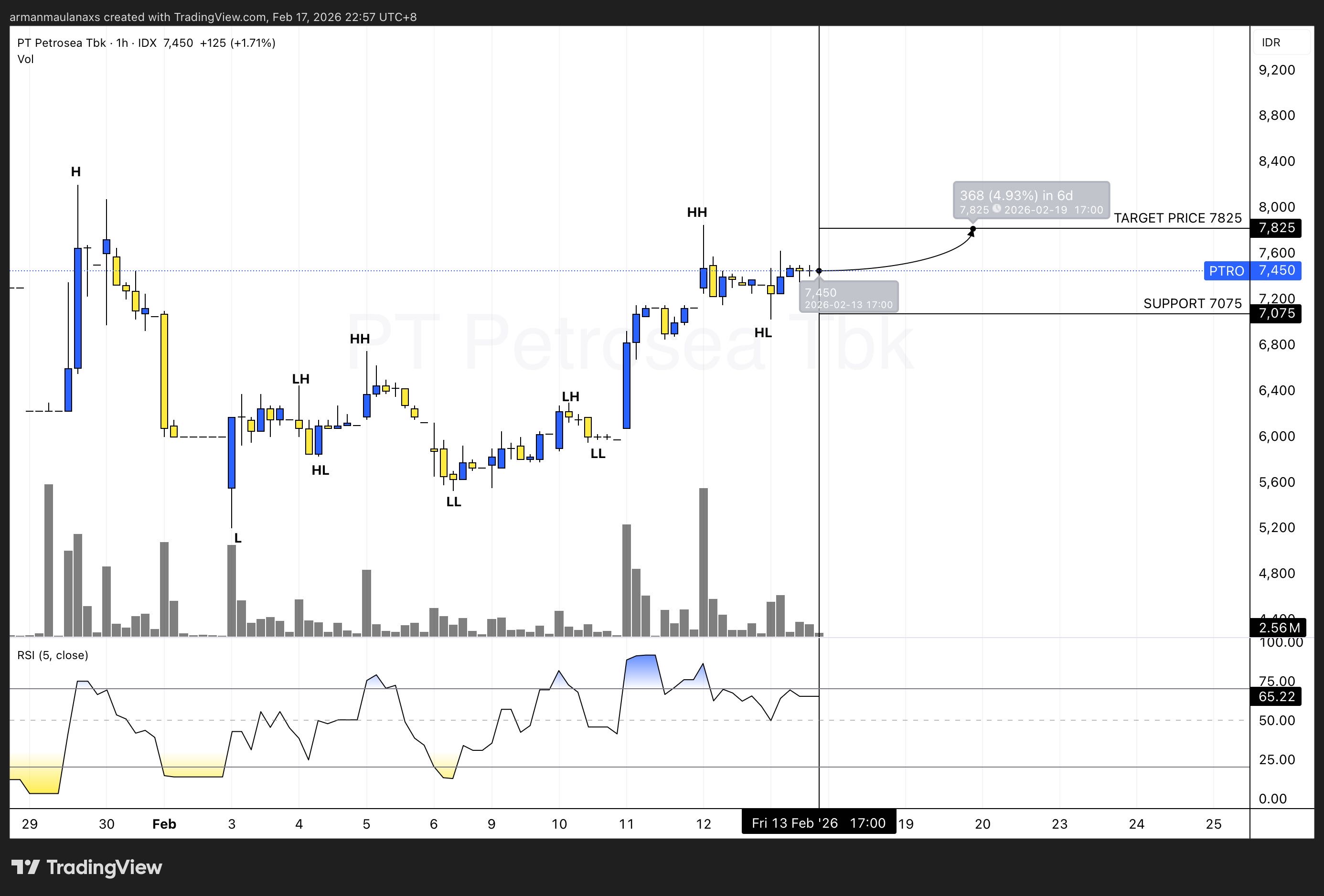 Trading Plan PT Petrosea Tbk ($PTRO) – 1H: