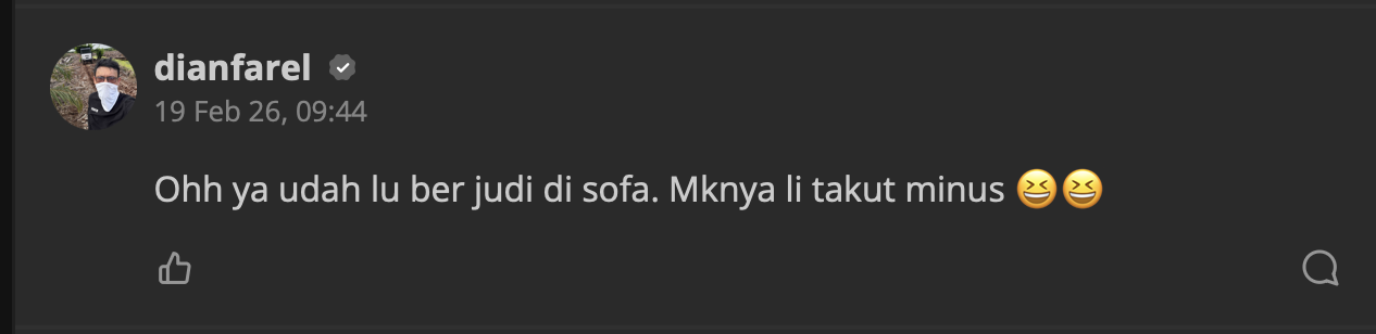 @dianfarel $SOFA udahlah gais gamau menerima fakta malah Ohh ya udah lu ber judi di sofa. Mknya li takut minus 馃槶 馃槶 haduhh kalo lu tau umur gw lu malu ama umur lu sendiri udahlah bang tengkyu diskusinya