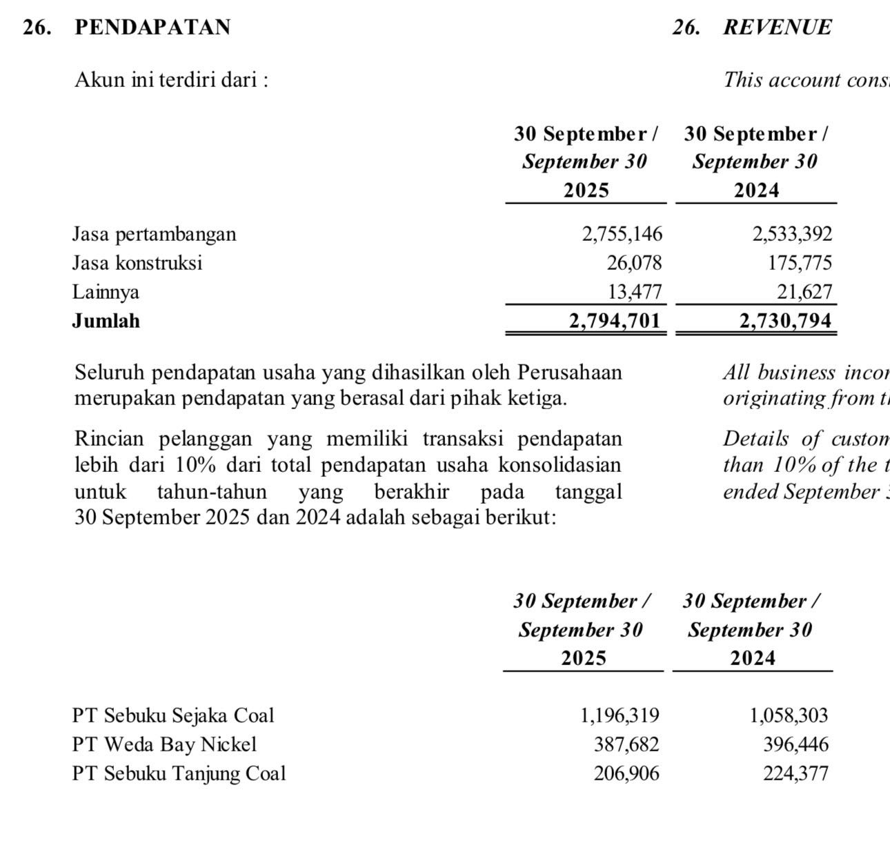 • PT Sebuku Coal Group (PT Sebuku Tanjung Coal & PT Sebuku Sejaka Coal): Menyumbang sekitar Rp1,27 Triliun. Ini setara dengan 44,4% dari total pendapatan seluruh perusahaan!