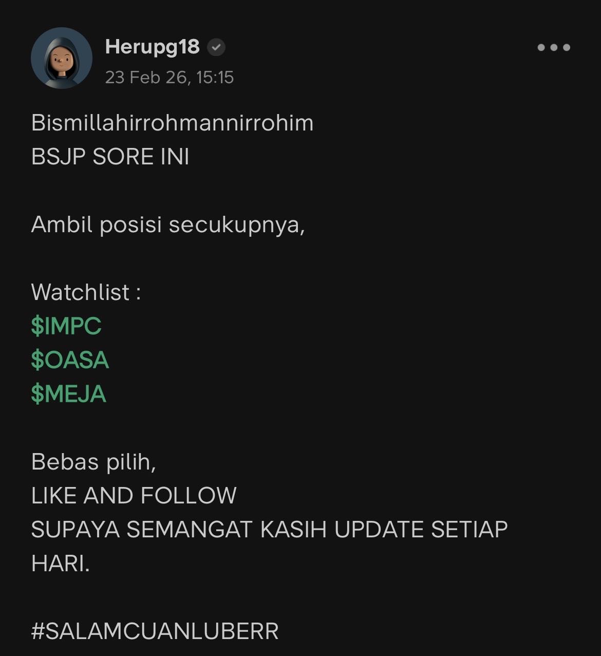 Yg kmren blm sempet cuan BSJP tgl 23, done ya