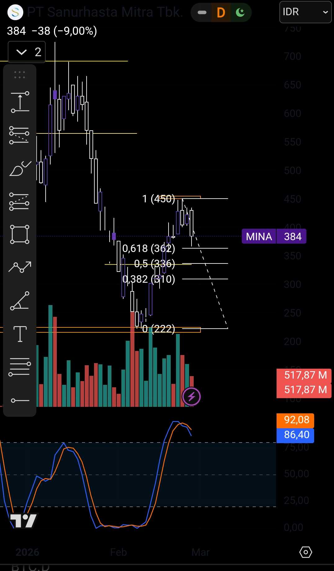 @radaka112 $MINA$BUVA done yaa di 430 lebih 20tik next strong support mina di 334 kalo ketahan bisa mantul