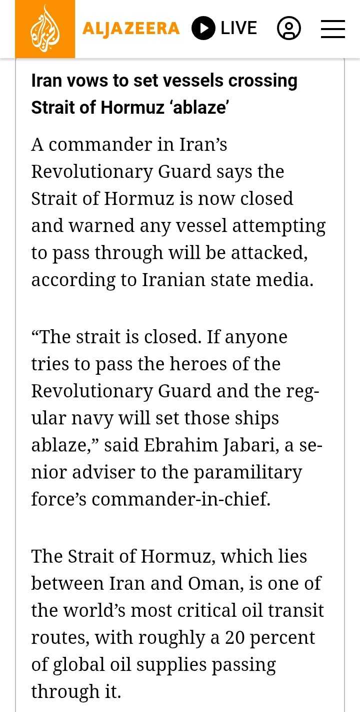 ❌ Sudah ada statement dari Iran bahwa Selat Hormuz ditutuphttps://cutt.ly/4tENLbr3$OIL $GAS $IHSG