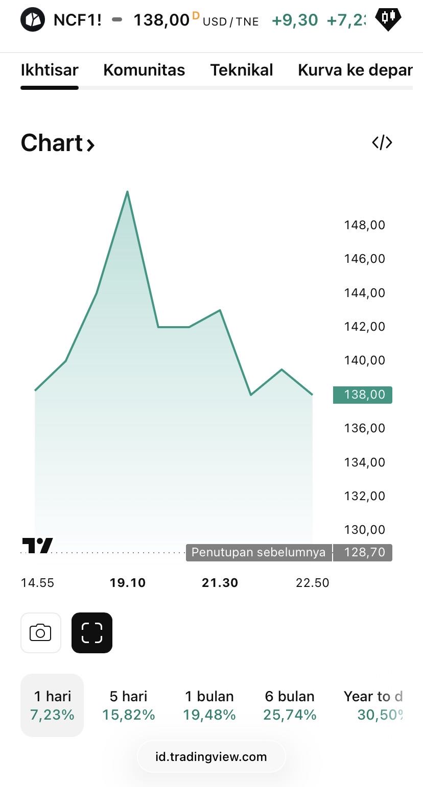 ๐ NCF1 (Newcastle Coal Futures) naik 7%