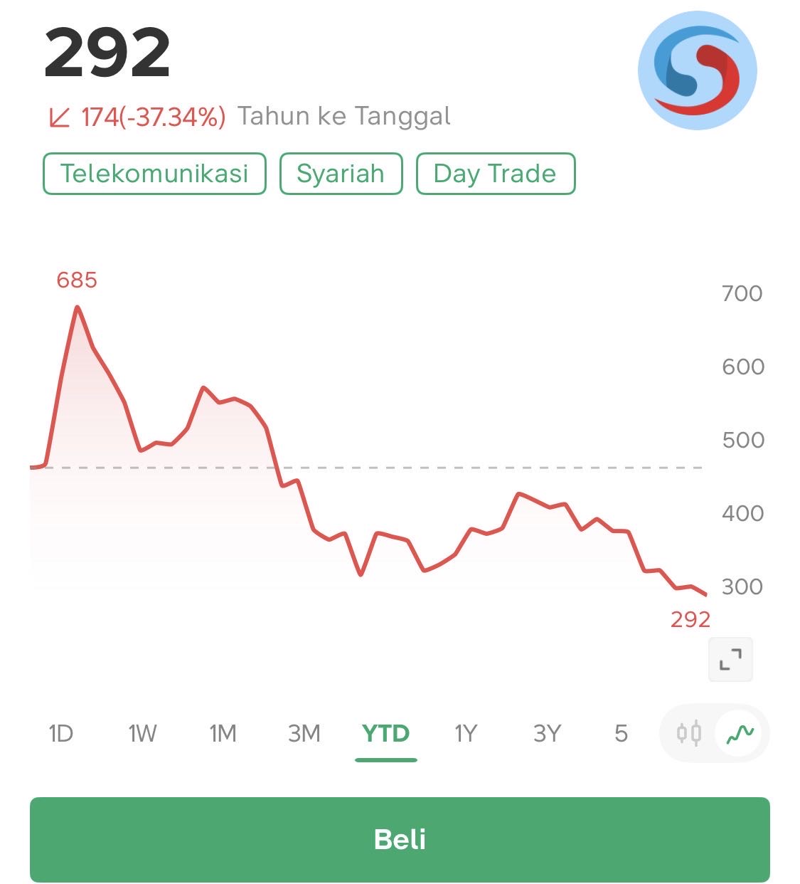 KASIAN YANG MASUK DI 500 sd 600 ya… Sudah Minus 50%, sedangkan Sahamnya di Harga saat ini 292 PER NYA masih PER VOC..