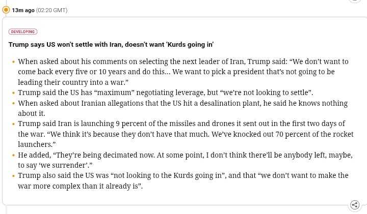 ➖ Trump mengklaim kapasitas militer Iran sudah turun signifikan.