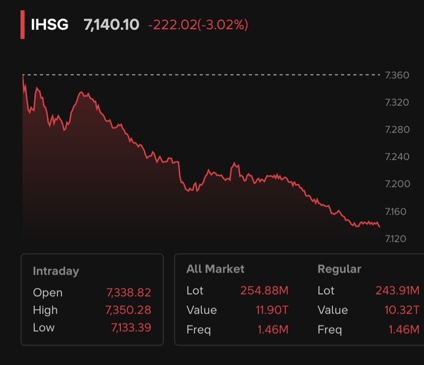 Sesuai prediksi ya $IHSG hari ini koreksi cukup dalam. Target penurunan Senin harusnya kejemput. Weekend waktunya Trump event. Stay cash pilihan tepat saat kondisi seperti sekarang. Pemberat minggu depan potensial $BUMI PTRO $CDIA