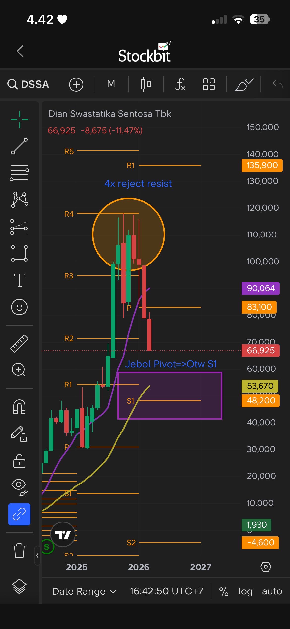 Biar ga dikatain dukun ngasal nebak😅apakah sultan2 $DSSA tidak menaruh curiga saat 4x kereject resist…di pucuk harum. Bandar Saham big cap memang pintar mengelabui sultan dengan pergerakannya yg smooth saat distribusi di pucukkk…