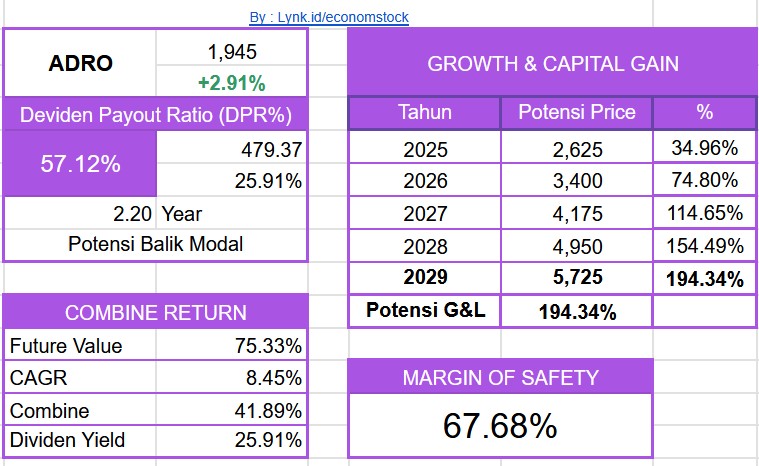 nih aku spil hasil valuasi saham $ADRO sampai 4 tahun kedepan, ini perhitungan sudah di digunakan sejak 5th yang lalu saat COVID19 dan sejauh ini works.
