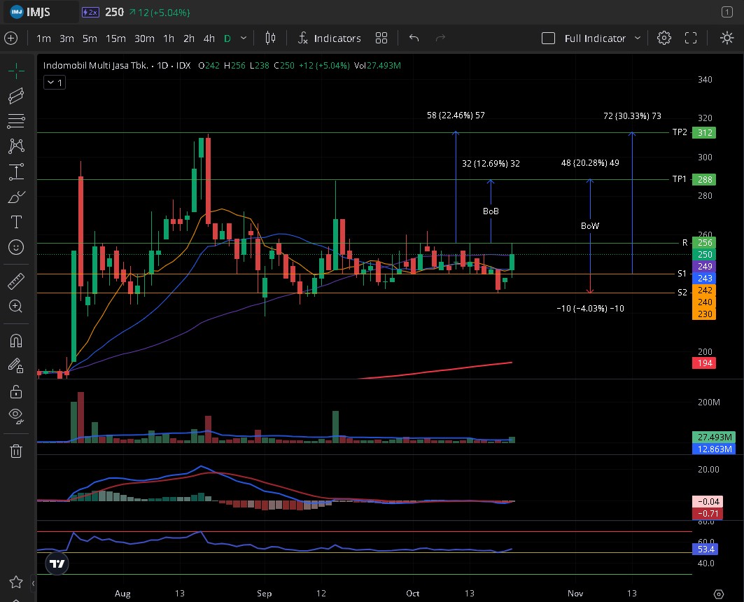 $IMJS terpantau sedang konsolidasi, menarik kalau bisa BO > R 256 untuk BoB.