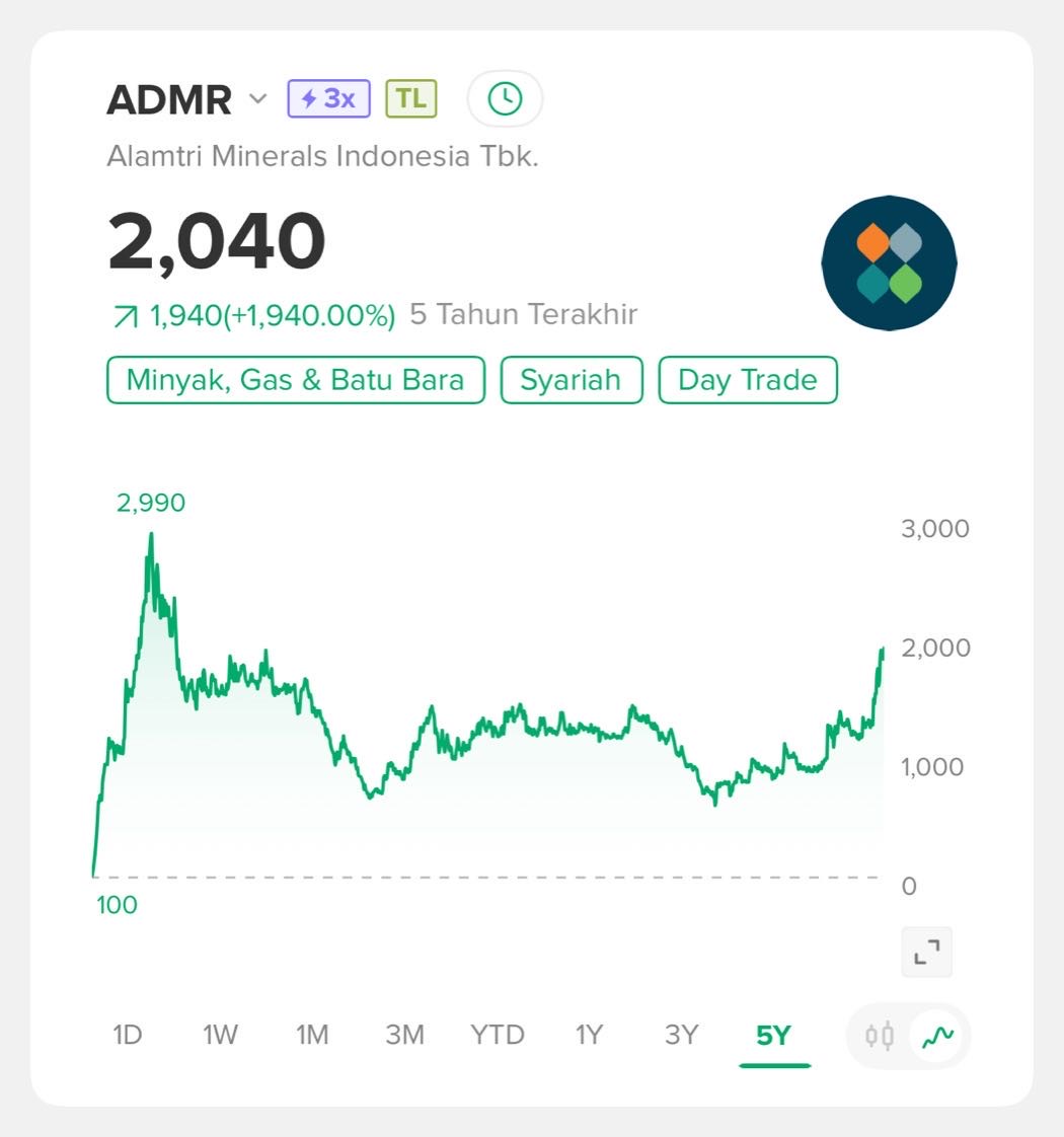Mas dewa $ADMR bisa kemana?? 2340 dan 3000 selama suplai gak pelit ya. Makanya enak beli di bawah, pilihannya mau sell di valuasinya atau ketika ritel fomo.