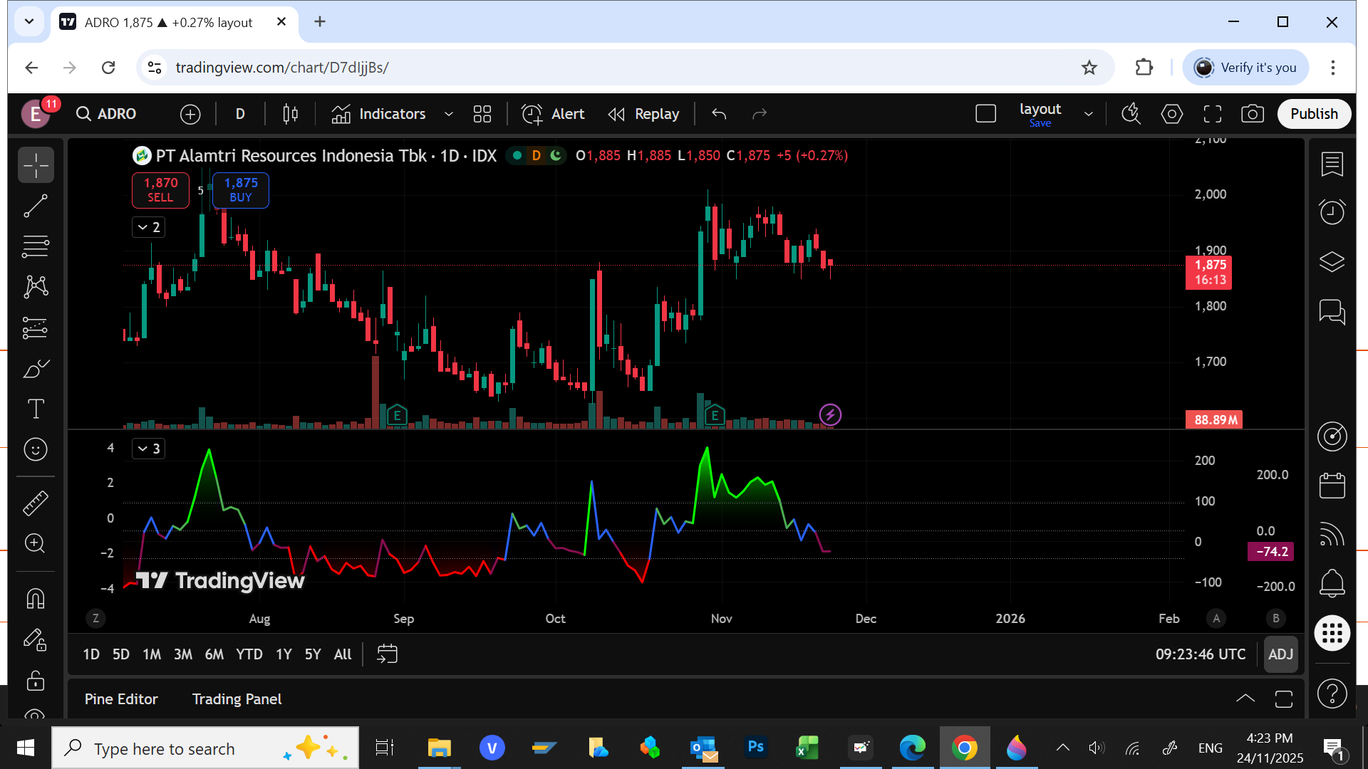 udah pas lah beli $ADRO, jaring selot-selot, Alhamdulillah dikasih harga di bawah closing hari ini 🤲