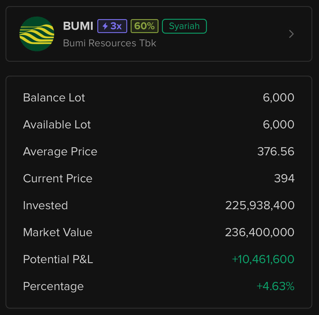 $BUMI 500 Posisi Yang Pas Buat Bumi Yang Ngejar MSCI, Soalnya Asing Main Aman dan mungkin banyak yang beli Di Pertengahan 300-700 dan posisi yang paling pas 500, Kalo Misal Bumi Naik nya Terlalu Ekstrim Bisa Kena Uma dan Suspend, Jadi Paling Stabil Di 500 Setelah MSCI Langsung Dah Terbang
