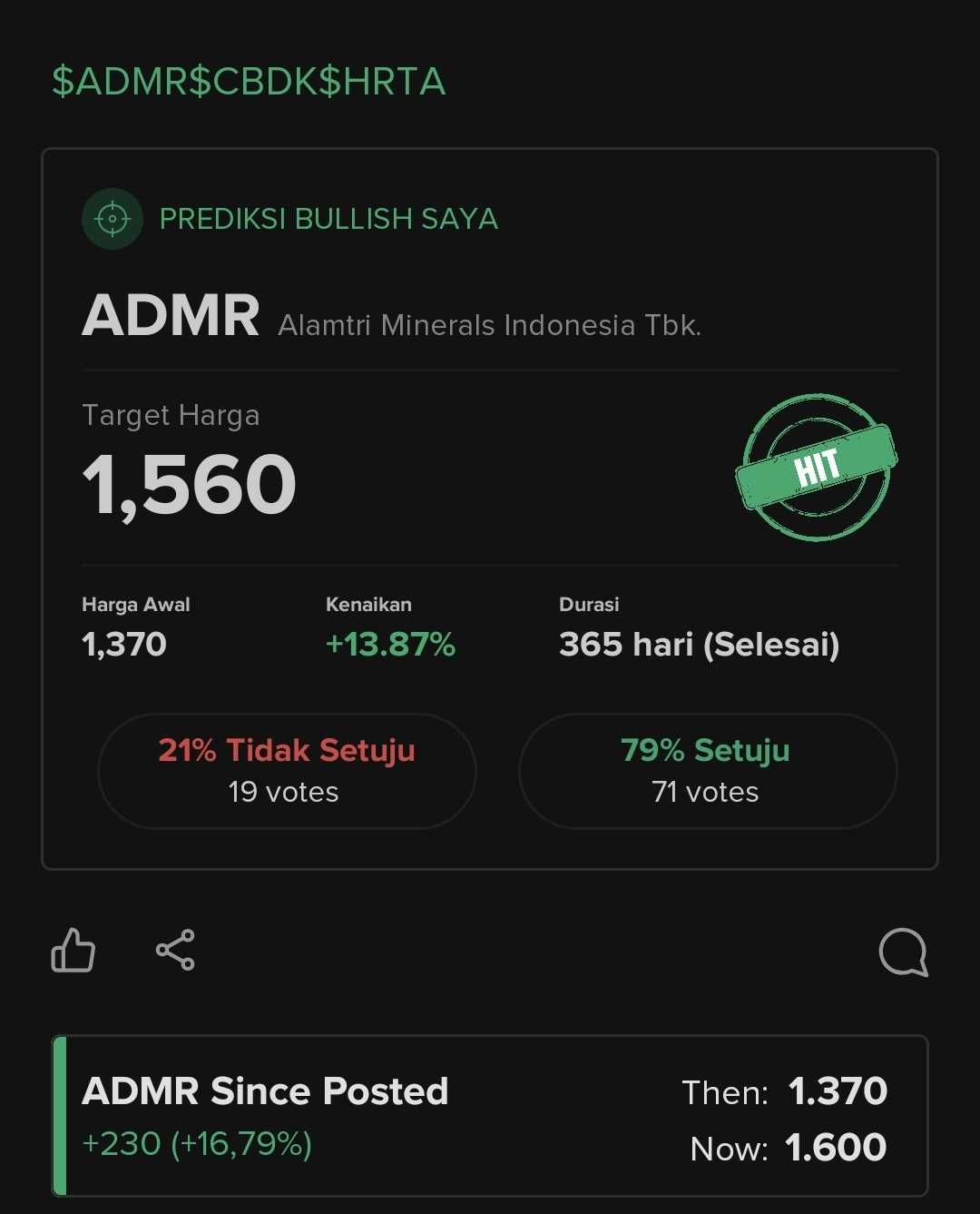 ADMR ini punya potensi yang besar kedepannya dalam jangka pendeknya akan bisa lanjut naik menuju Targetnya yang saat ini ada dikisaran angka 1720-dekat" 1800 dimana ADMR saat ini punya kisaran area Support ada diangka 1500-1540.