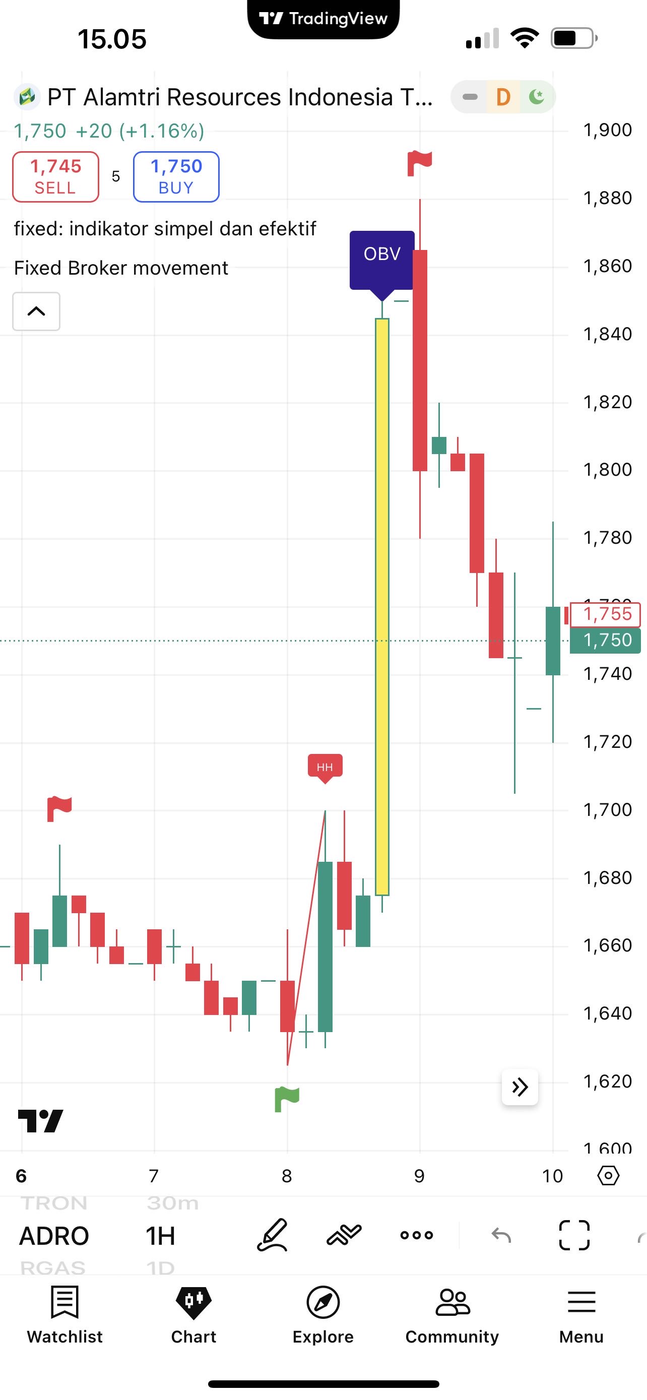 Kemarin evaluasi ulang indikator, kenapa harganya naik mendadak kemudian diturunkan lagi, kasihan ritel yg terlanjur beli diatas. Akhirnya ditambahkan satu indikator lagi ke chart, broker movement, yg menjadi penyebab harga naik lalu dibanting lagi.