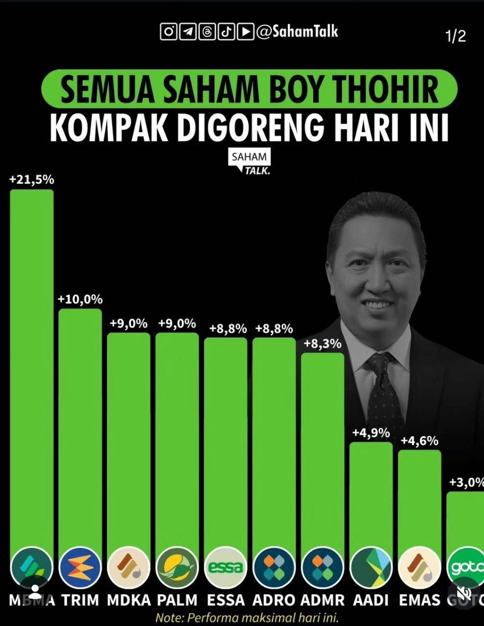Pak Thohir membara hari ini. Semoga berlanjut ARA hingga MSCI. Malu lah sama Pak Luhut & Pak Bakrie