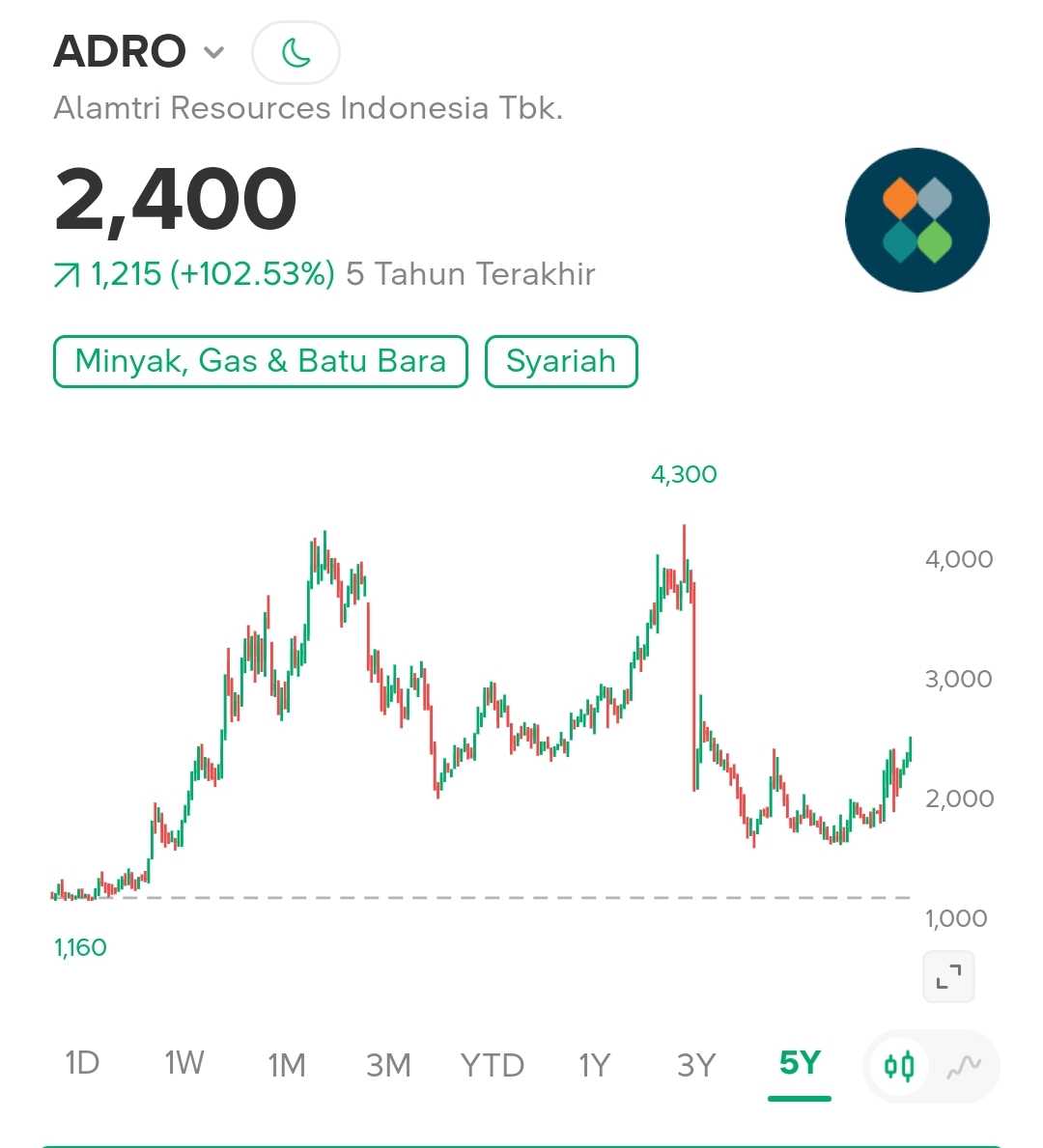 Coba bandingkan dengan $ADRO AADI yang sama sama bergerak dalam tambang batu bara.