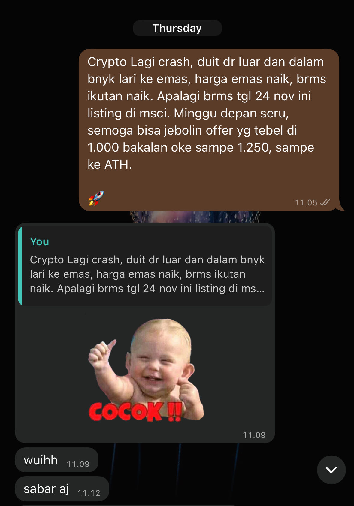 Apapun juga, kita patut bersyukur bahwa bursa saham Indonesia di tahun 2025 ini meriah. Banyak trader saham baru di tahun ini. Ada yang jualan kelas belasan juta dan laku keras semua. Ini bagus kedepannya. Minimal kalau ada yg rela bayar belasan juta buat kelas saham, modalnya juga pasti minimal ratusan juta sampai milyaran. ini bagus buat likuiditas bursa saham kita. mungkin itu sebabnya asing banyak keluar, index saham malah ATH. Retail bersatu tetap kuat sahamnya.